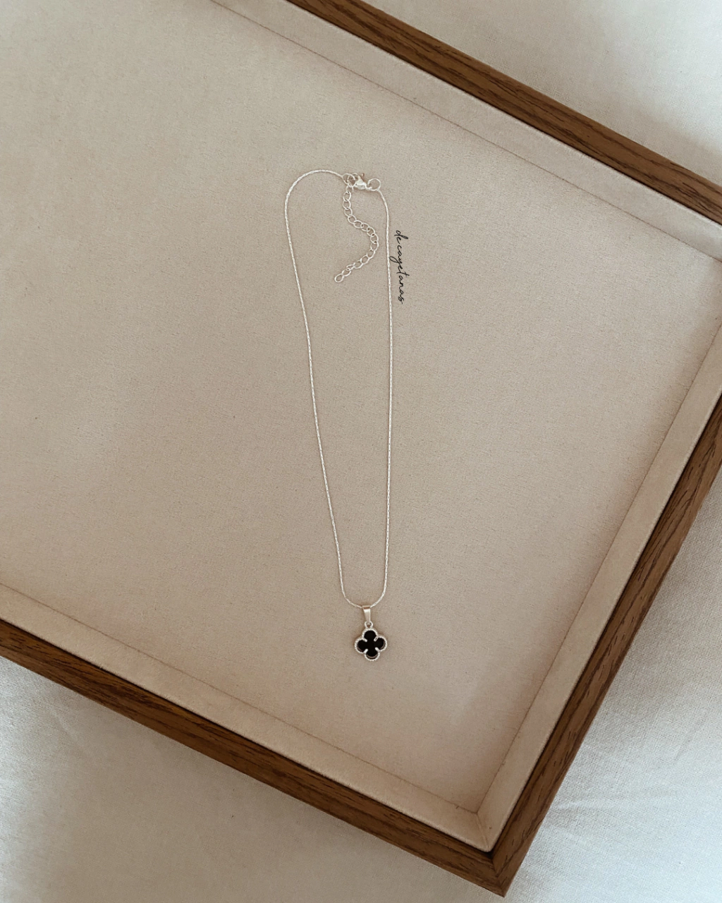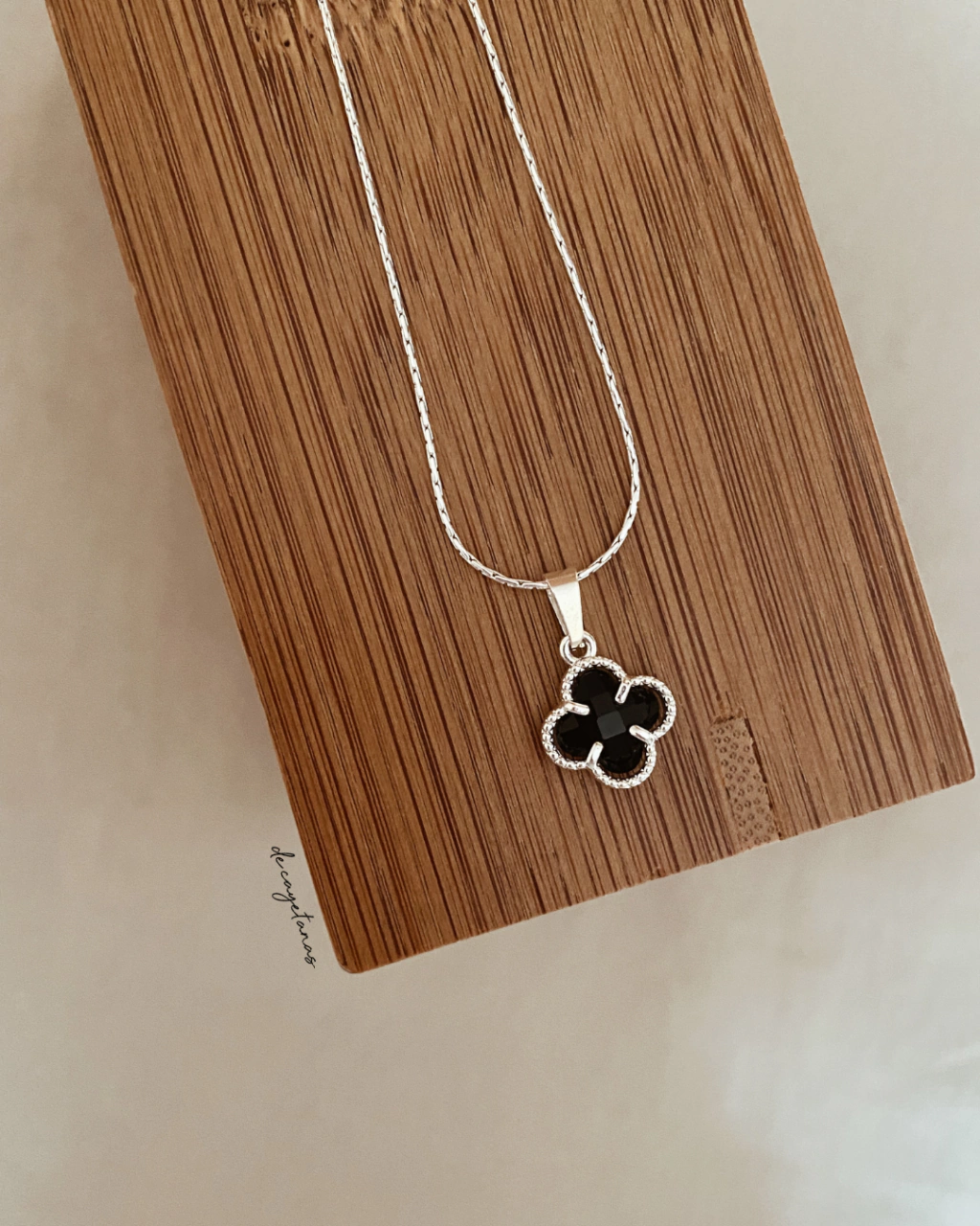 Centro en forma de flor de cristal deroca negro engarzada en acero