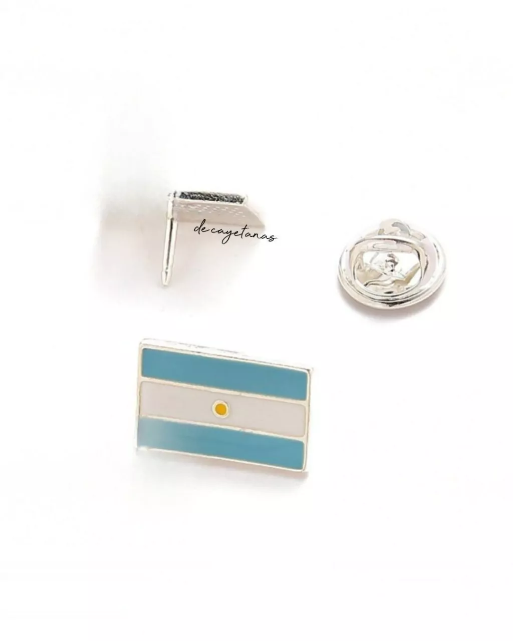 Escarapela metálica con forma de bandera con pasante tipo pin