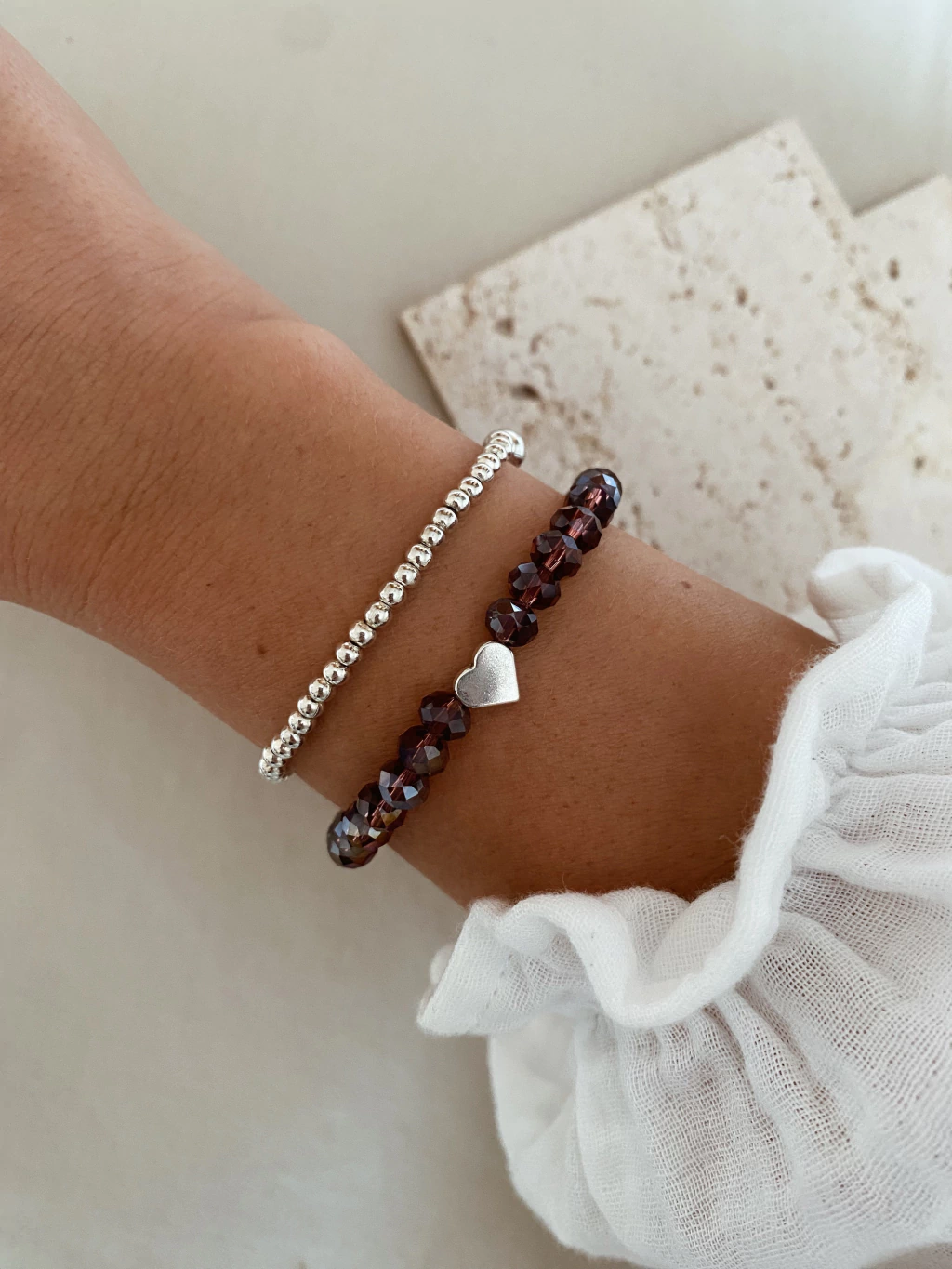Pulsera elástica realizada en cristal de roca tornasolado color morado