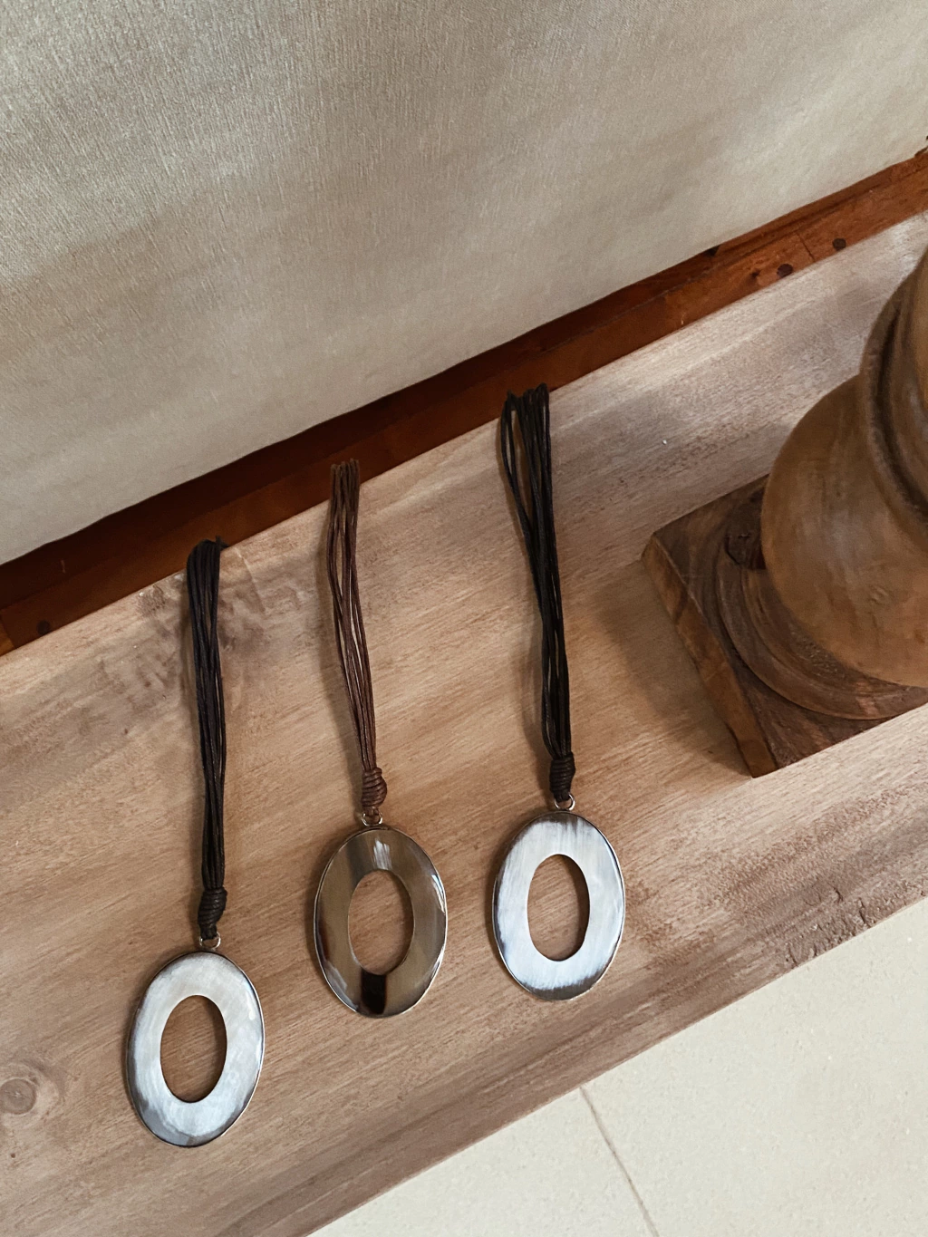Nuevas piezas exclusivas realizadas con colgantes de asta natural, engarzada artesanalmente en alpaca, con gancho de agarre y cierre también realizados en alpaca.