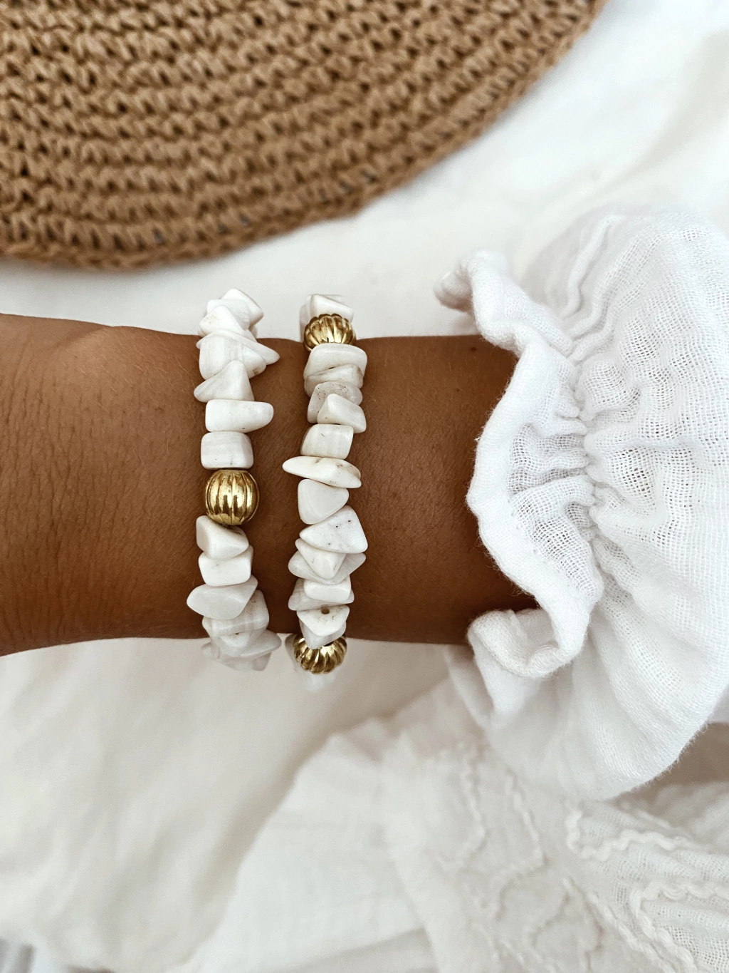 Realizada con escallas naturales en tonos blancos hueso beigecito y detalles en fundición metálica importada dorada