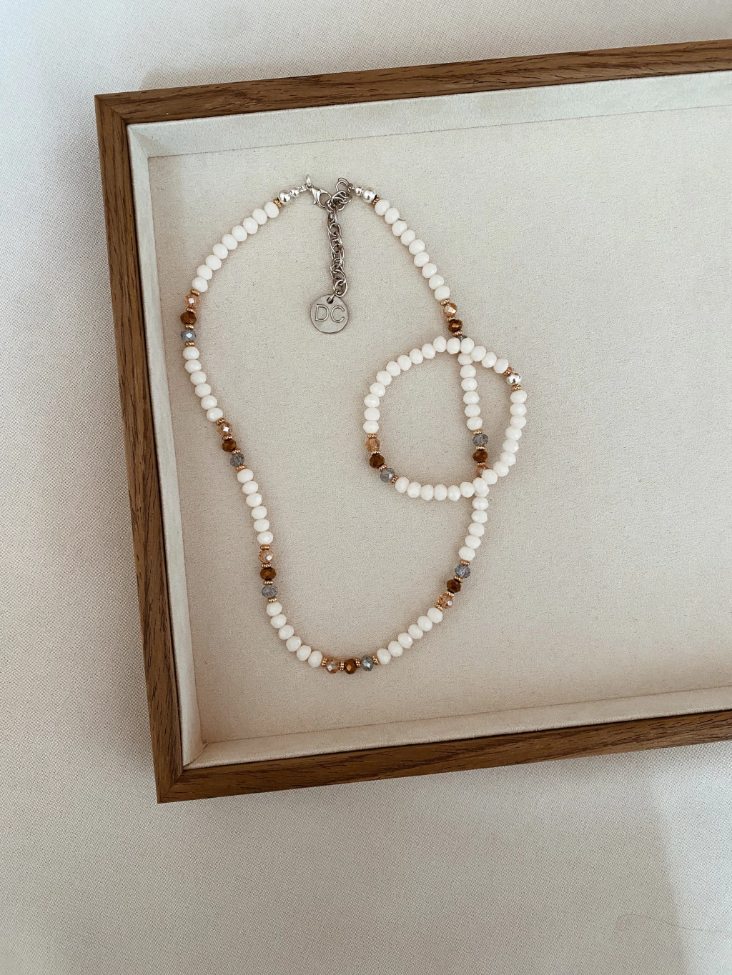 Pulsera realizada con cuentas de cristal de roca importado hueso tipo rosado
