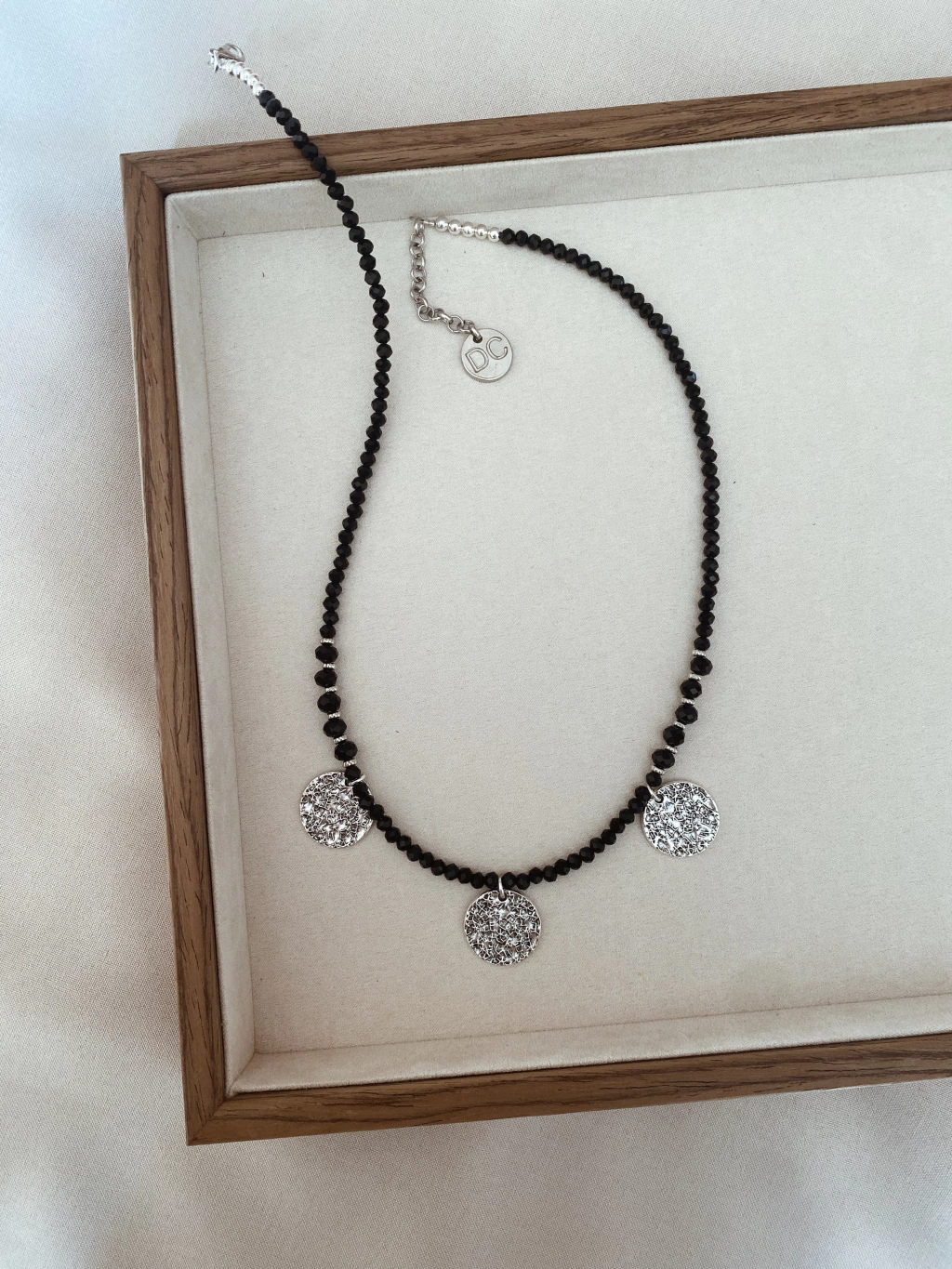 Colgante pechera realizado con cuentas de cristal de roca importado negro en diferentes tamaños