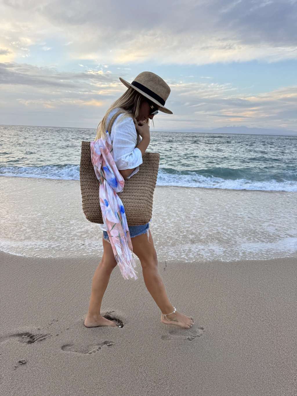 - Pañuelo estampado con flecos en las puntas