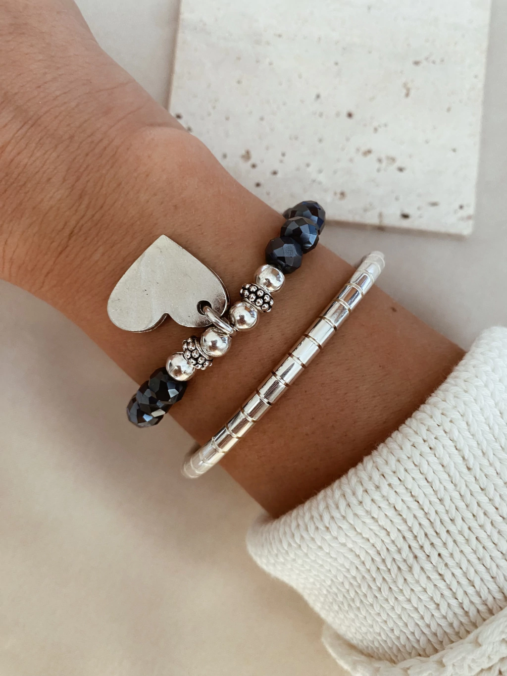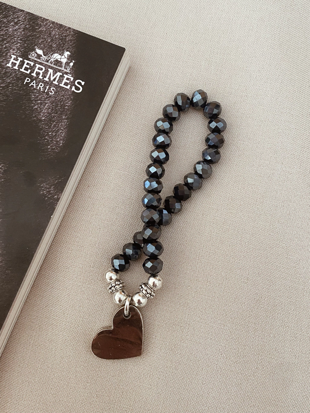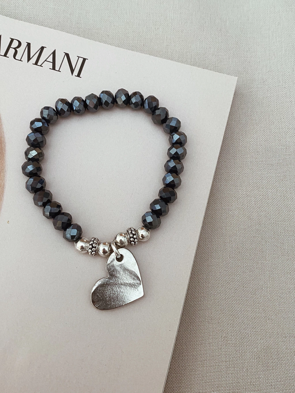 Pulsera realizada con cuentas de cristal de roca importado tornasolado color azul noche